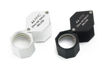 10倍トリプレットルーペ.AMC シルバー・ブラック 22ミリの大きなレンズで高解像度の観察が可能です。様々な観察に適してます。 9,500円(税別) |