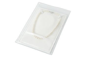 高級台紙付パール用ビニール袋 寸法:240×170×0.2mm (1枚入) 真珠ネックレス、オメガネックレスに最適な厚手チャック付ビニール袋です。スエード調の高級感のある専用台紙にキレイに収納できます。 600円(税別) |