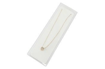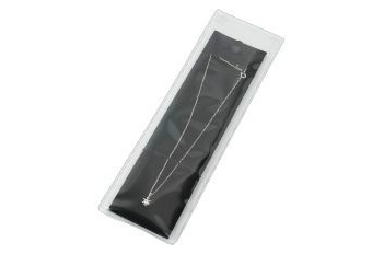 高級台紙付ネックレス用ビニール袋 寸法:270×80×0.2mm (1枚入) 厚手のチャック付ビニール袋に高級専用台紙を組み込んでるのでネックレスなどがキレイに収まります。 500円(税別) |