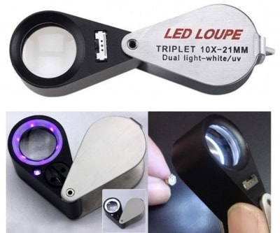 UV+LEDライト付10倍ルーペ ダイヤモンドの判定鑑定の補助や、その他の検査に最適なトリプレットルーペです。 4,000円(税別) レターパックプラス対応 |