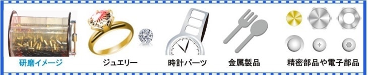 金属模型、時計パーツ、ジュエリー、宝飾品、貴金属製品の表面処理加工に最適です。