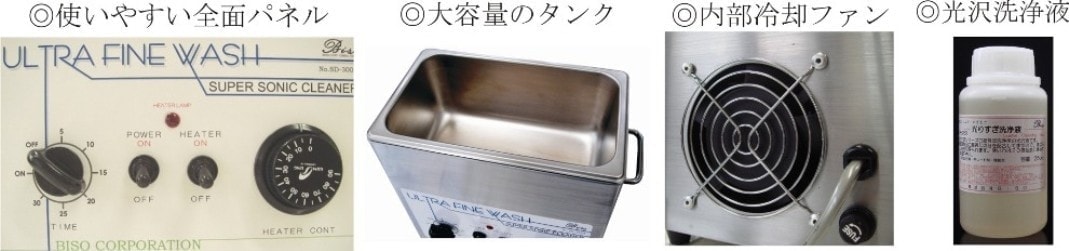 光沢洗浄液と蓋が標準付属です。汚れが速効で落ちるお薦めの洗浄器です。