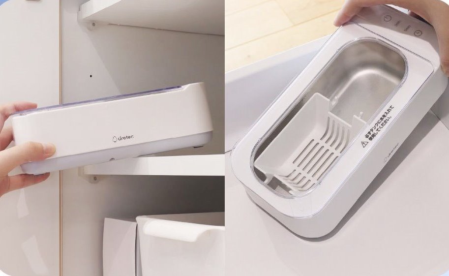 スペースを取らないスリムデザインで、棚や引出しに収納可能な洗浄器です。