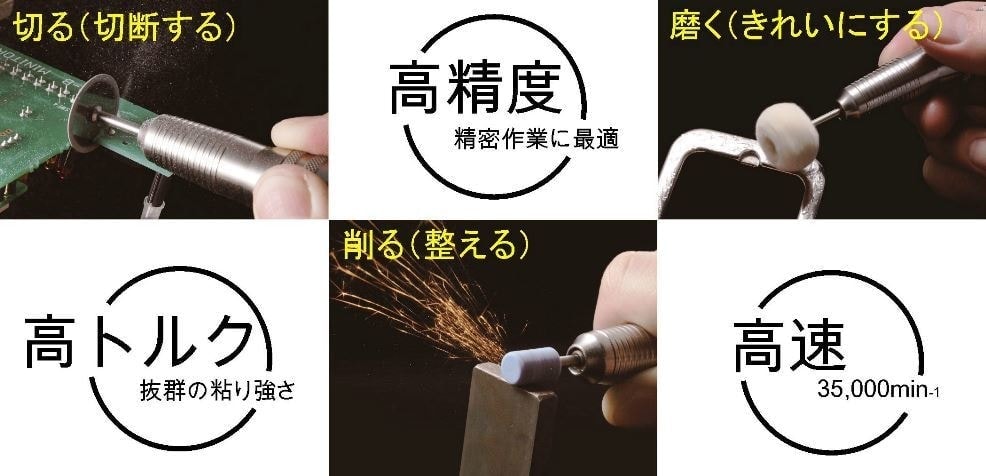プロユース向けの、低価格、超小型、高性能マイクログラインダーです。高精度、高トルク、