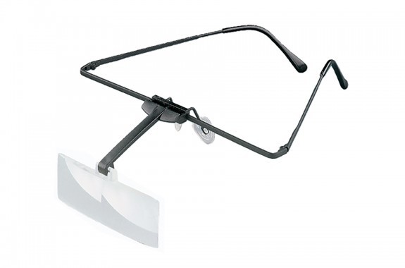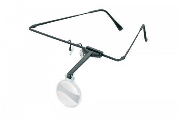 メガネのように耳にかけて使うフレームタイプのヘッドルーペです。軽量で視界も広く、メガネ