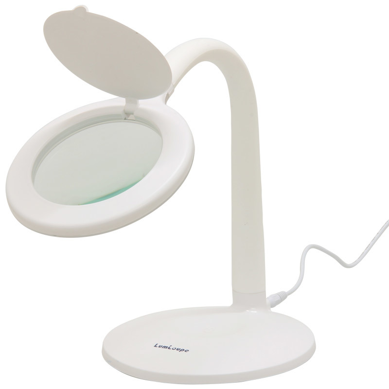 卓上LEDルーペ1.75倍 LumiLoupe LEDライト付きのスタンドルーペで調光は3段階調整可能です。細かい作業、検査など用途は様々です。 4,750円(税別) |