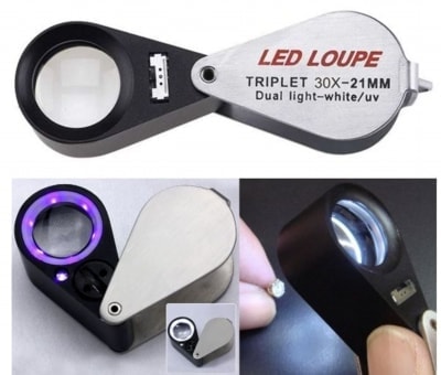 UV+LEDライト付30倍ルーペ ダイヤモンドの判定鑑定の補助や、その他の検査に最適なトリプレットルーペです。 5,000円(税別) レターパックプラス対応 |